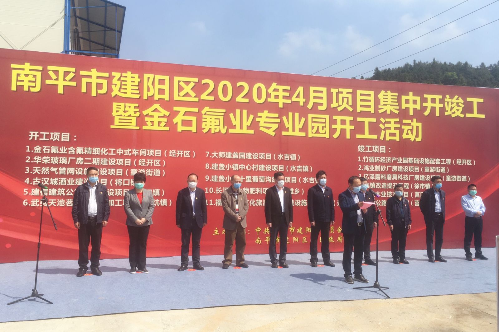 4月24日,我區(qū)舉行4月份重大項(xiàng)目集中開竣工儀式。南平市副市長(zhǎng)何明星,建陽(yáng)區(qū)委書記楊新強(qiáng)、區(qū)長(zhǎng)魏敦盛等區(qū)黨政班子領(lǐng)導(dǎo),區(qū)直有關(guān)單位、項(xiàng)目業(yè)主單位主要負(fù)責(zé)人和監(jiān)理單位、施工單位代表參加活動(dòng)。儀式現(xiàn)場(chǎng),何明星宣布項(xiàng)目開工,楊新強(qiáng)致辭,魏敦盛主持,公司董事長(zhǎng)陳建華代表項(xiàng)目業(yè)主發(fā)言。